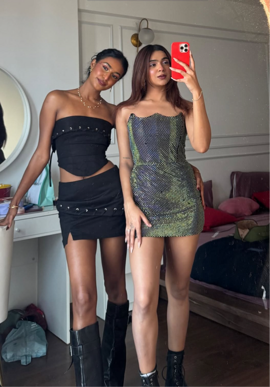 40% OFFBest SellerRegular price From Rs. 4,199.00Sale price From Rs. 4,199.00 Regular priceUnit price / perRs. 6,999.00Rebel Rhinestone mini dress