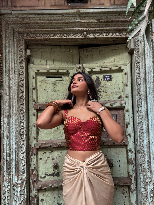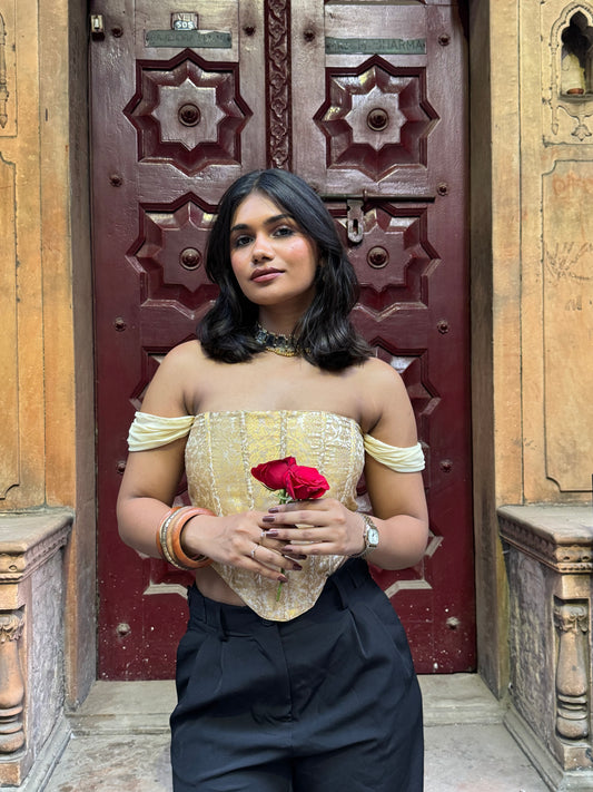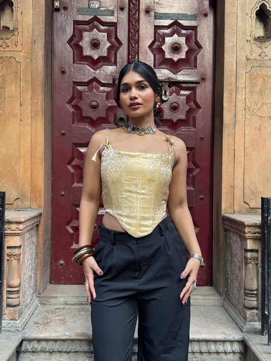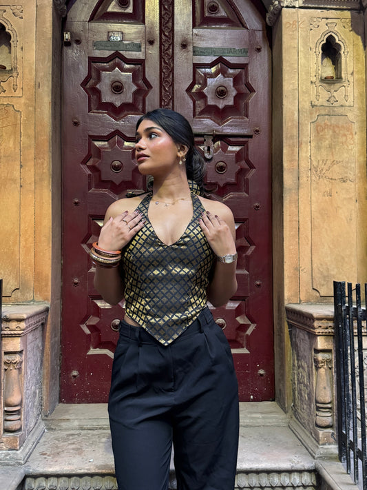 Golden black Banarasi top