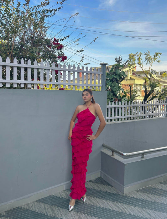 halter ruffle dress