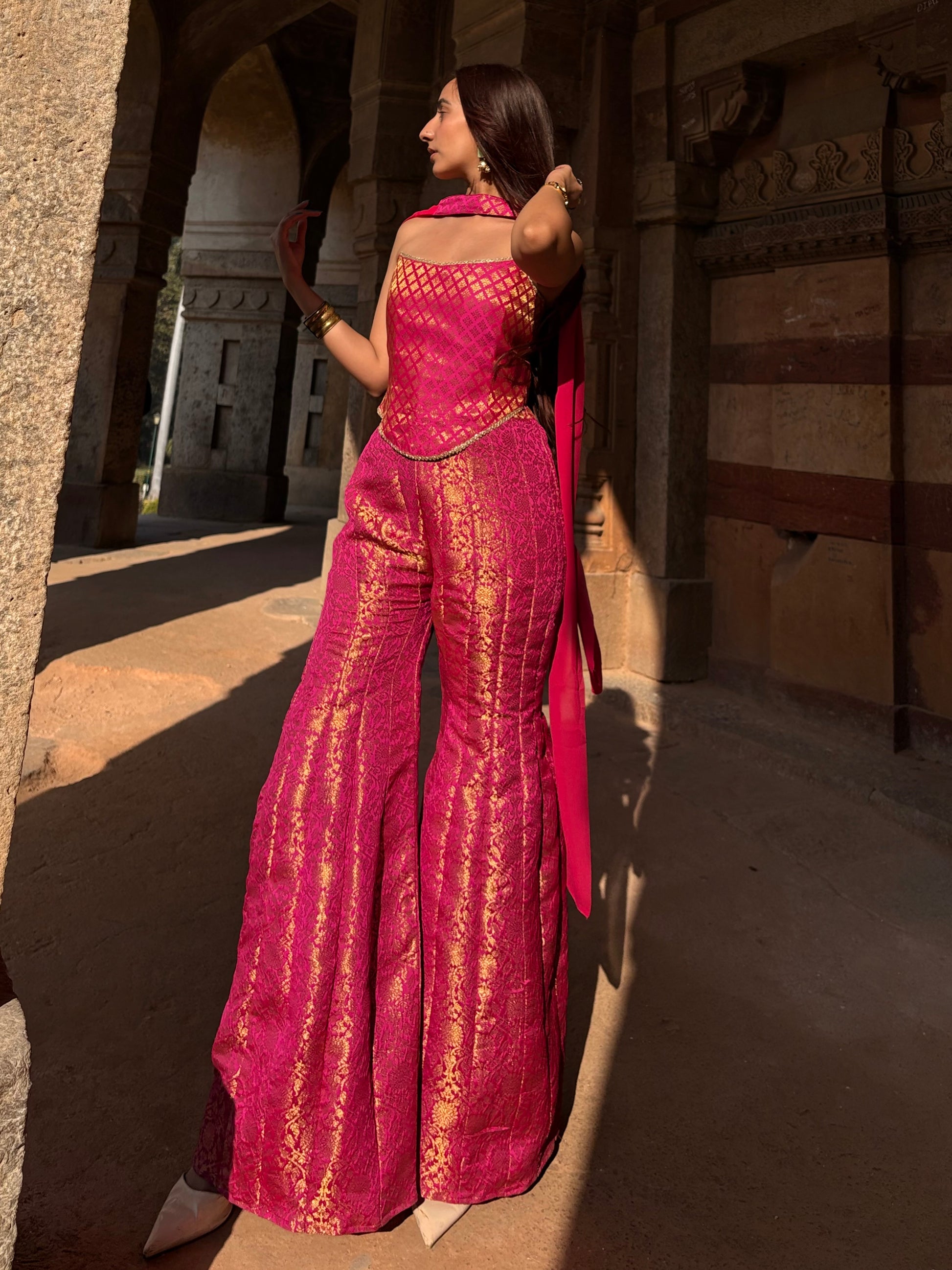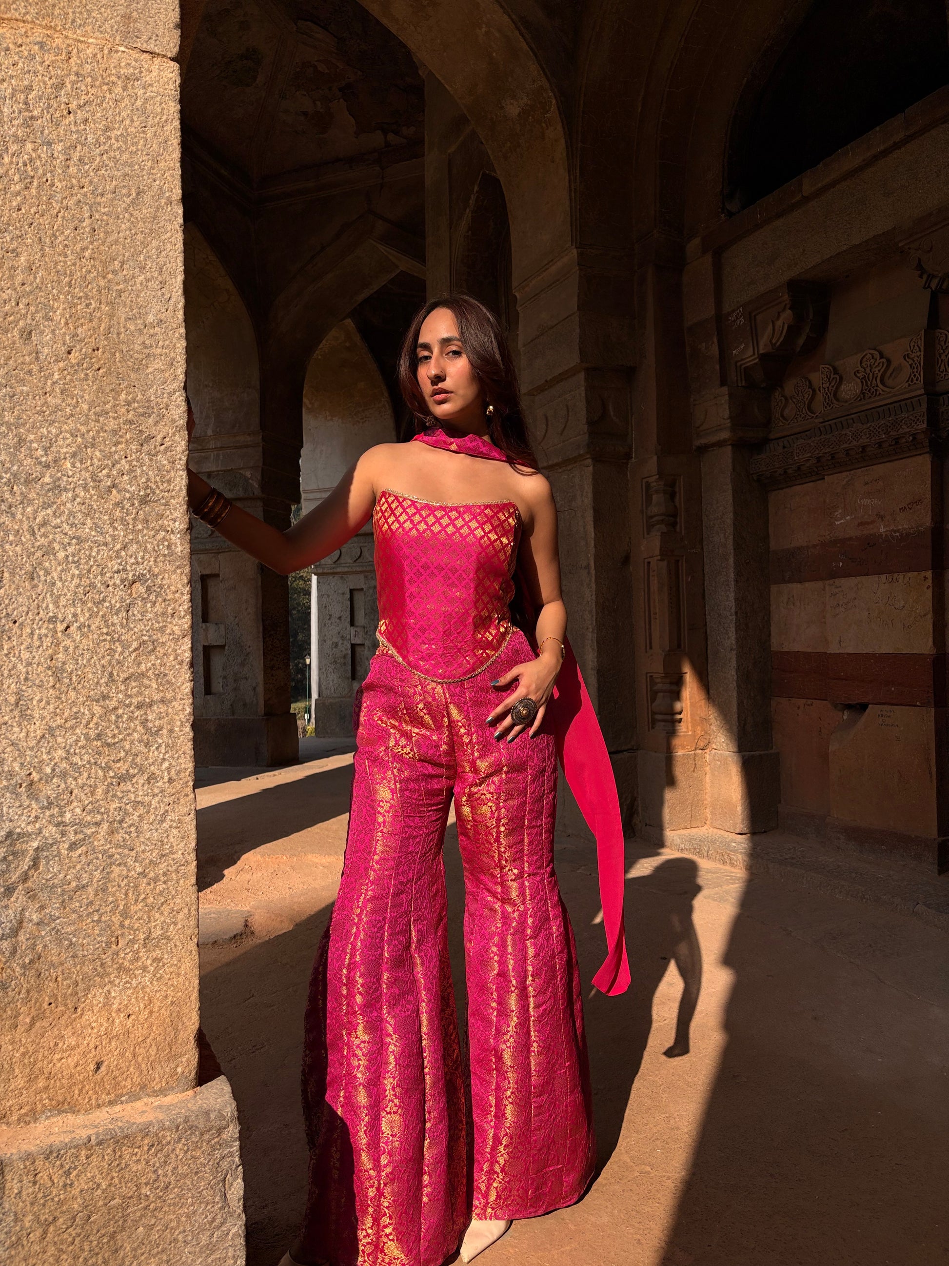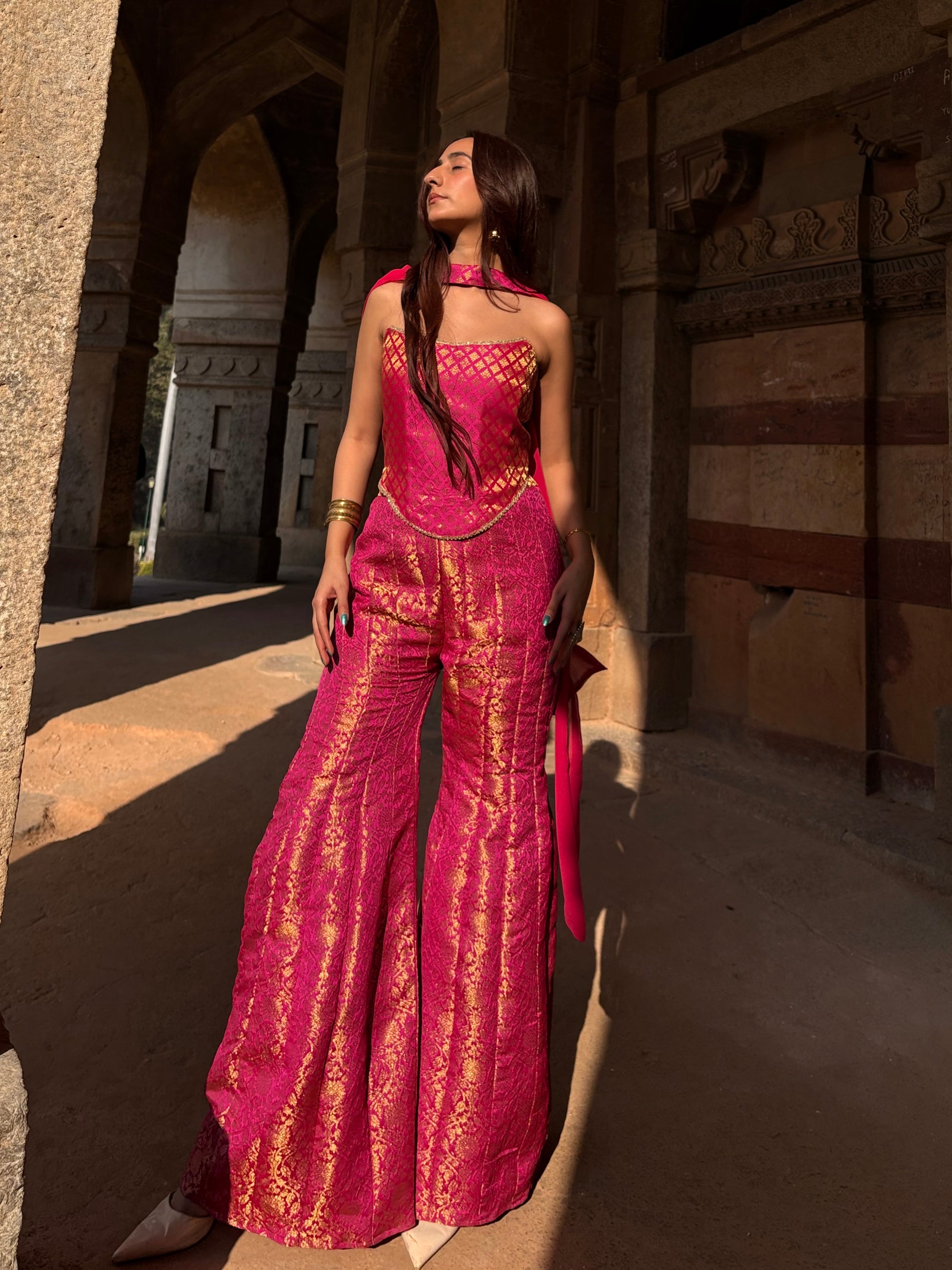 A bold fusion of elegance and confidence. This stunning red masterpiece is tailored to perfection, featuring a sleek silhouette that hugs your curves in all the right places.