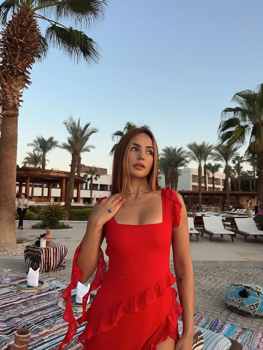 A bold fusion of elegance and confidence. This stunning red masterpiece is tailored to perfection, featuring a sleek silhouette that hugs your curves in all the right places.